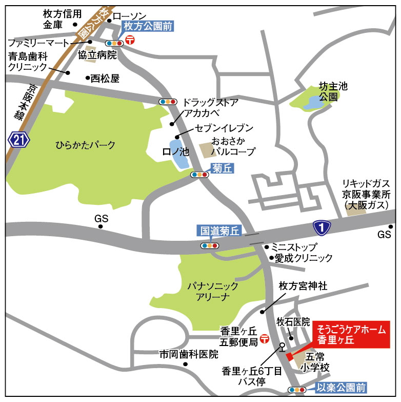 | アクセス | 京阪本線「枚方公園」駅よりバス8分「香里ヶ丘6丁目」停歩1分 |